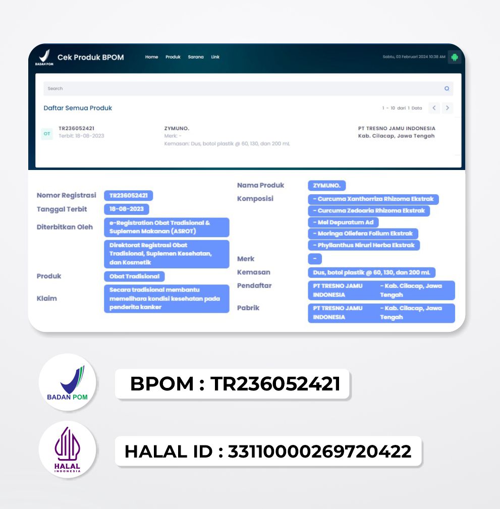Zymuno Sudah Tersertifikasi BPOM dan Halal MUI