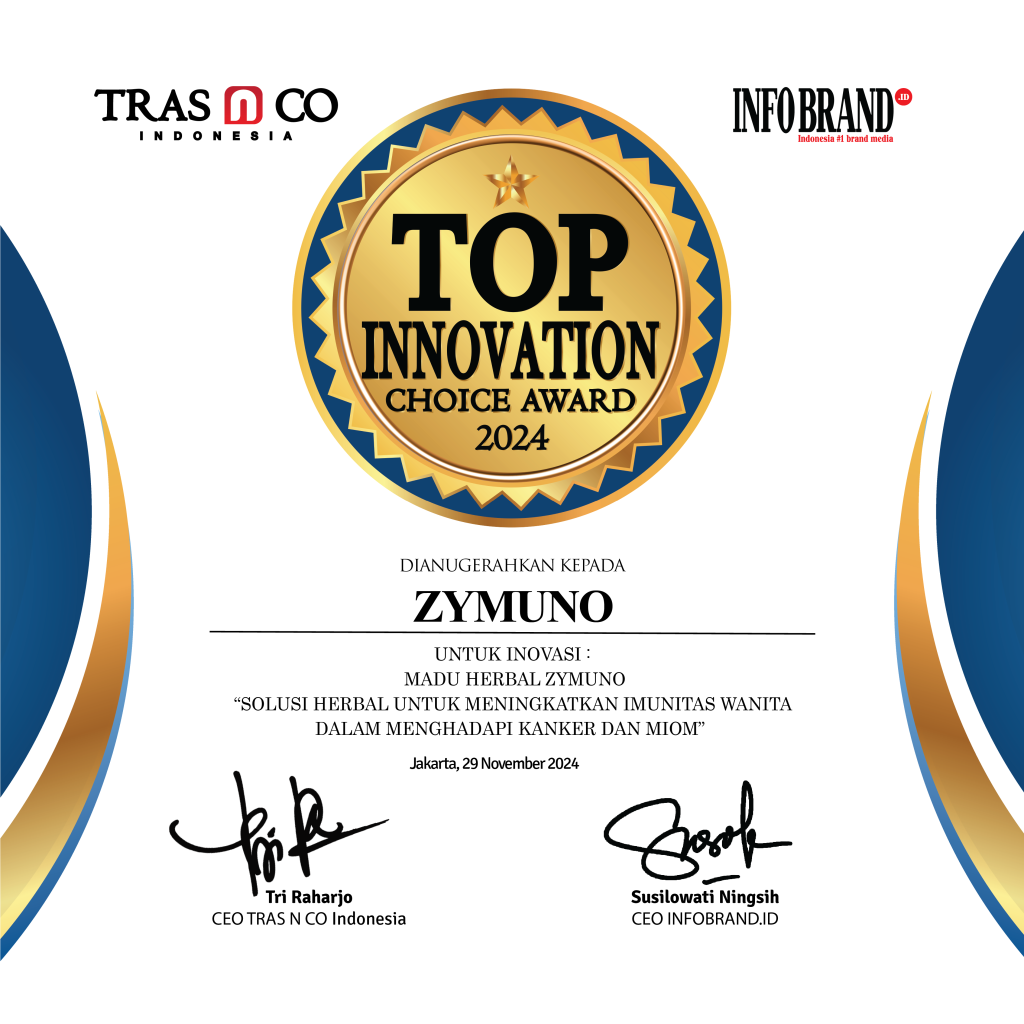 MADU ZYMUNO Mendapat Penghargaan Nasional "Top Innovation Choice Award 2024" dan "Best Brand dari Kalodata Indonesia Social Commerce Conference 2024 (KISCC) Award" & Berbagai Penghargaan Lainnya.